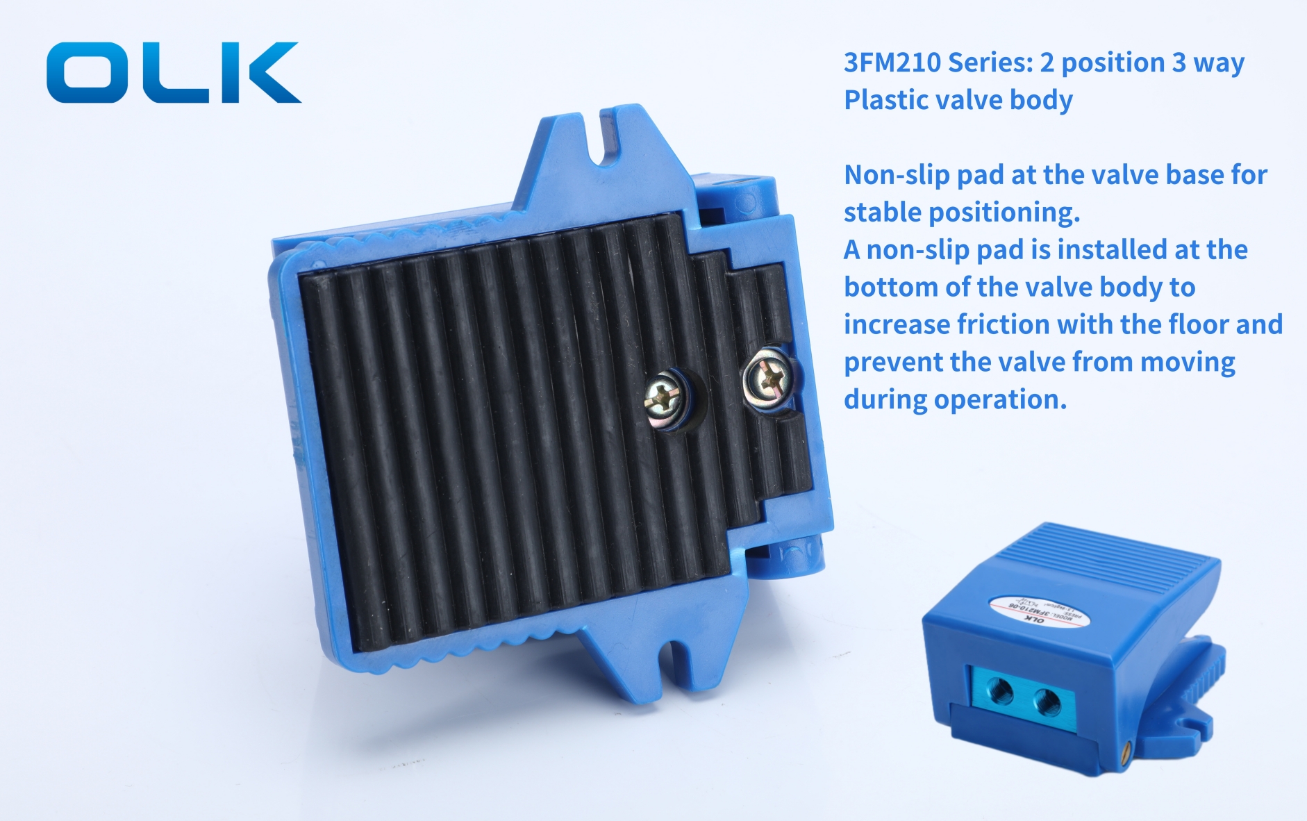 Ouleikai (OLK) telah merancang bantalan kaki karet anti selip yang tahan lama sehingga meningkatkan gesekan, sehingga memudahkan pengoperasian kaki. Selama penggunaan, harap perhatikan posisi dan status katup kaki 3F untuk memastikan pengoperasian yang benar dan menghindari malfungsi.