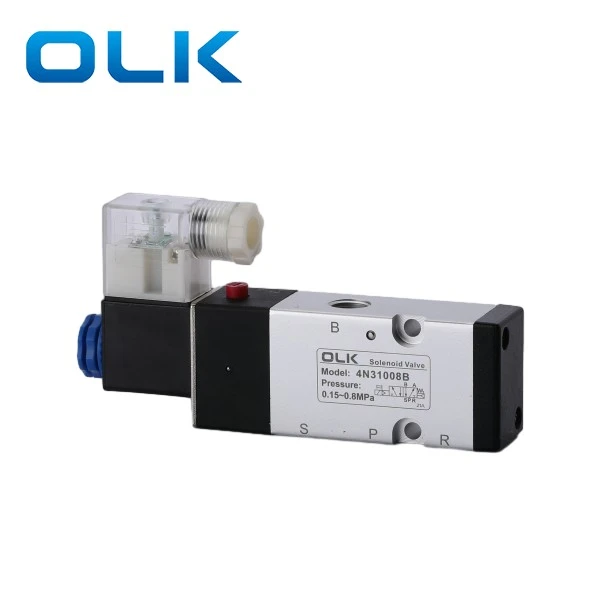 OLK 2Posisi 5 Way 4N310-08 Plat Solenoid Valve Thread adalah ukuran port G1/4.4N310-08 Valve memiliki satu desain outlet udara belakang, memungkinkan untuk pemasangan yang fleksibel dan menghemat ruang, secara efektif meningkatkan kecepatan respons dan stabilitas sistem.