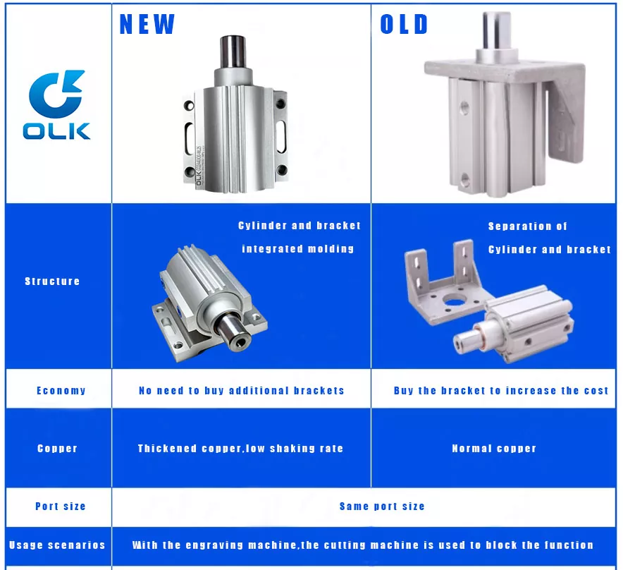 OLK PNEUMATIC memiliki dua gaya silinder untuk memenuhi kebutuhan pemandangan yang berbeda. Untuk detail spesifik, silakan hubungi tim penjualan OLK.