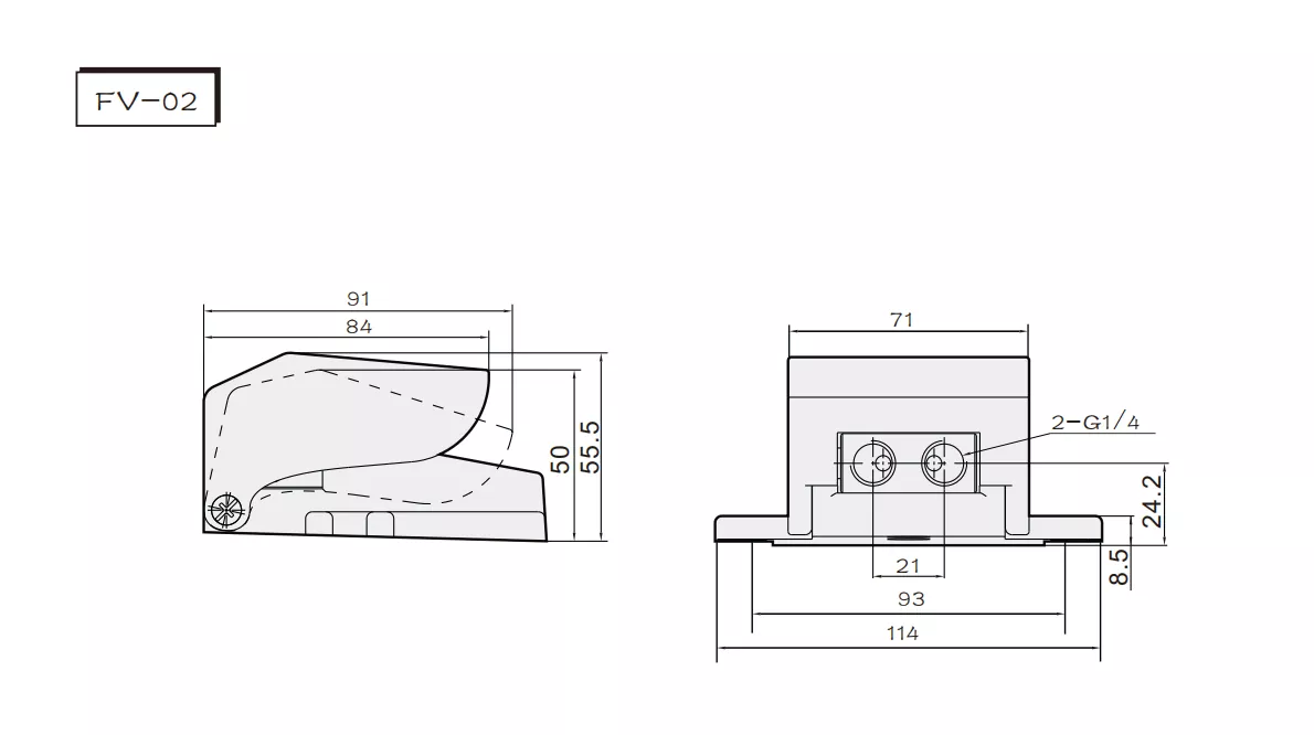 FV-02 Katup pedal kaki pneumatik 3 arah Parameter umum