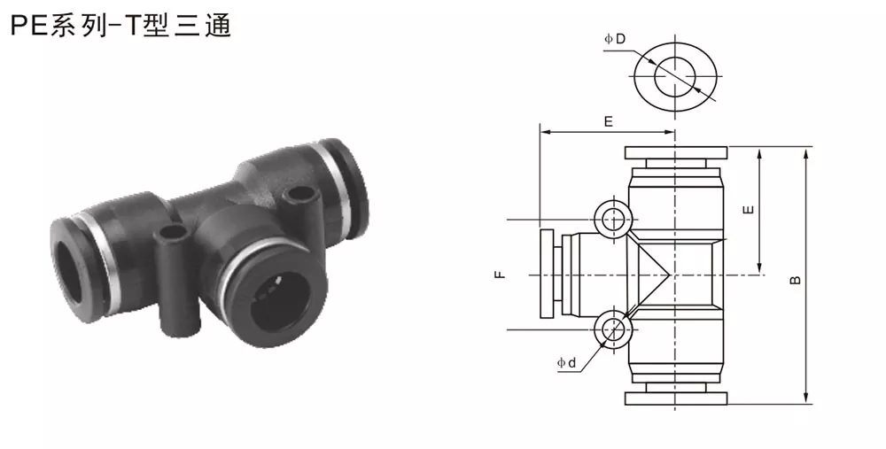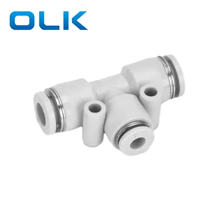 Pusat tee PE Union dalam pemasangan tabung adalah pemasangan berbentuk T yang digunakan untuk membagi atau menggabungkan aliran udara dalam sistem pneumatik.