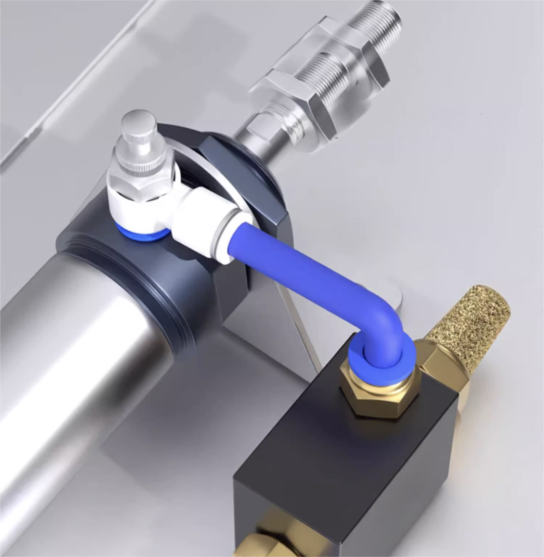 ItuSilinder mini MALsering dipasangkan dengan katup buang cepat QE untuk meningkatkan kecepatan pengoperasian.
